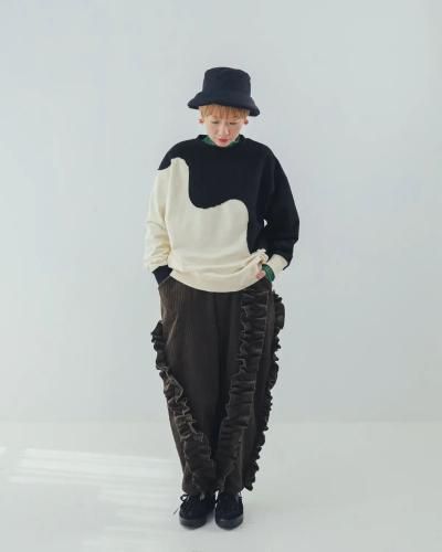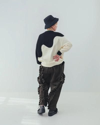 夜の帳(とばり)が次第に降りていくような、とろりとしたウェーブによる色の切り替えが大胆なトレーナーです。