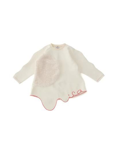 前面に大きくデザインされた半円はふかふかのボア素材で、見た目にもあたたか。