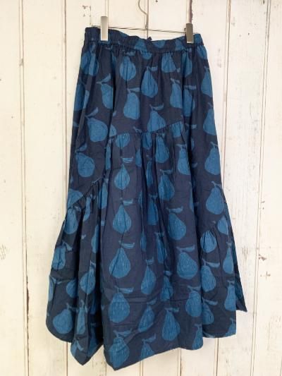 eka::/エーカ ラフランス柄 ティアードスカート(ネイビー)