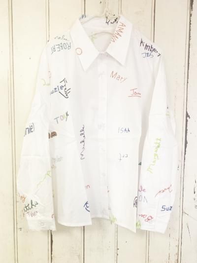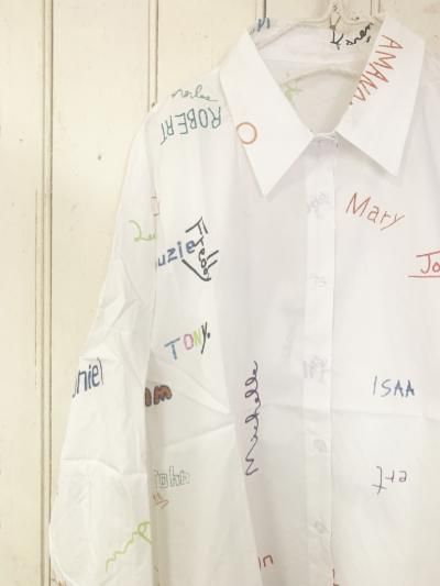 カラフルなロゴ柄が可愛いシャツ。