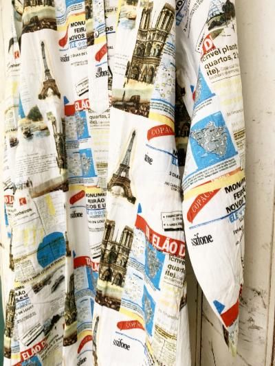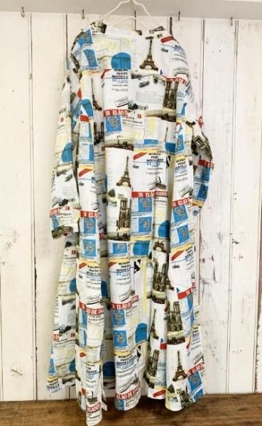 シーチング起毛素材の柄ワンピース。