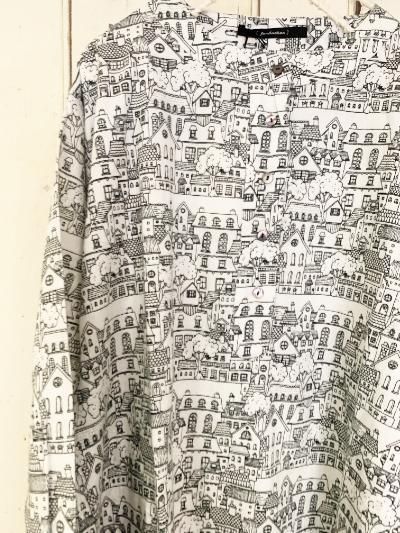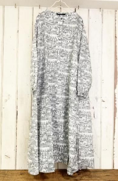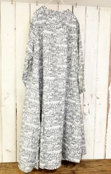 eka::/エーカ 起毛プリント 切替ワンピース(街並み)