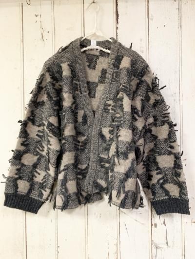 SO/エスオー ウール フリンジニット カーディガン(チャコール)