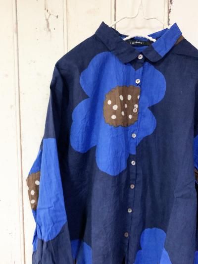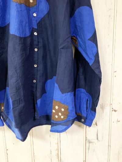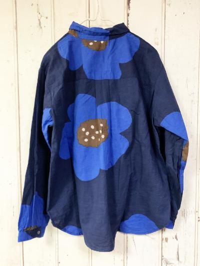 eka::/エーカ ヴィンテージ加工 大花プリント 長袖シャツ(ネイビー)